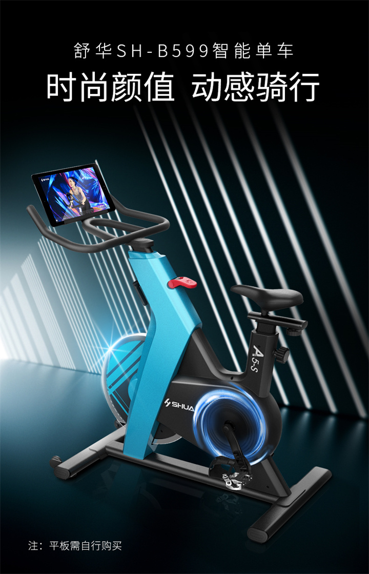 星空·综合推荐健身器材-舒华动感单车SH-B599采用三角形车架搭配工字底座的稳定结构设计,骑行更稳定,承重可达125kg,手动磁控阻力设计,骑行时无物理摩擦,更顺畅静音,同时无需插电,使用更便捷。13kg磁控飞轮,足量均质,保障骑行时的惯性力及动平衡,骑行劲爽。