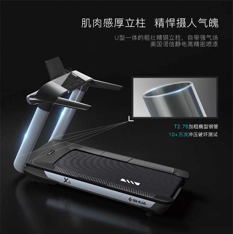 星空·综合推荐健身器材-舒华商用电动跑步机SH-T6500拥有10.1寸IPS高清触摸屏、Z型动感时尚外观设计、70×150mm精钢立柱机身、F级高效静音马达、520mm商用豪华跑带和35mm双层全跑台减震跑板等优势,让您享受科学跑步。
